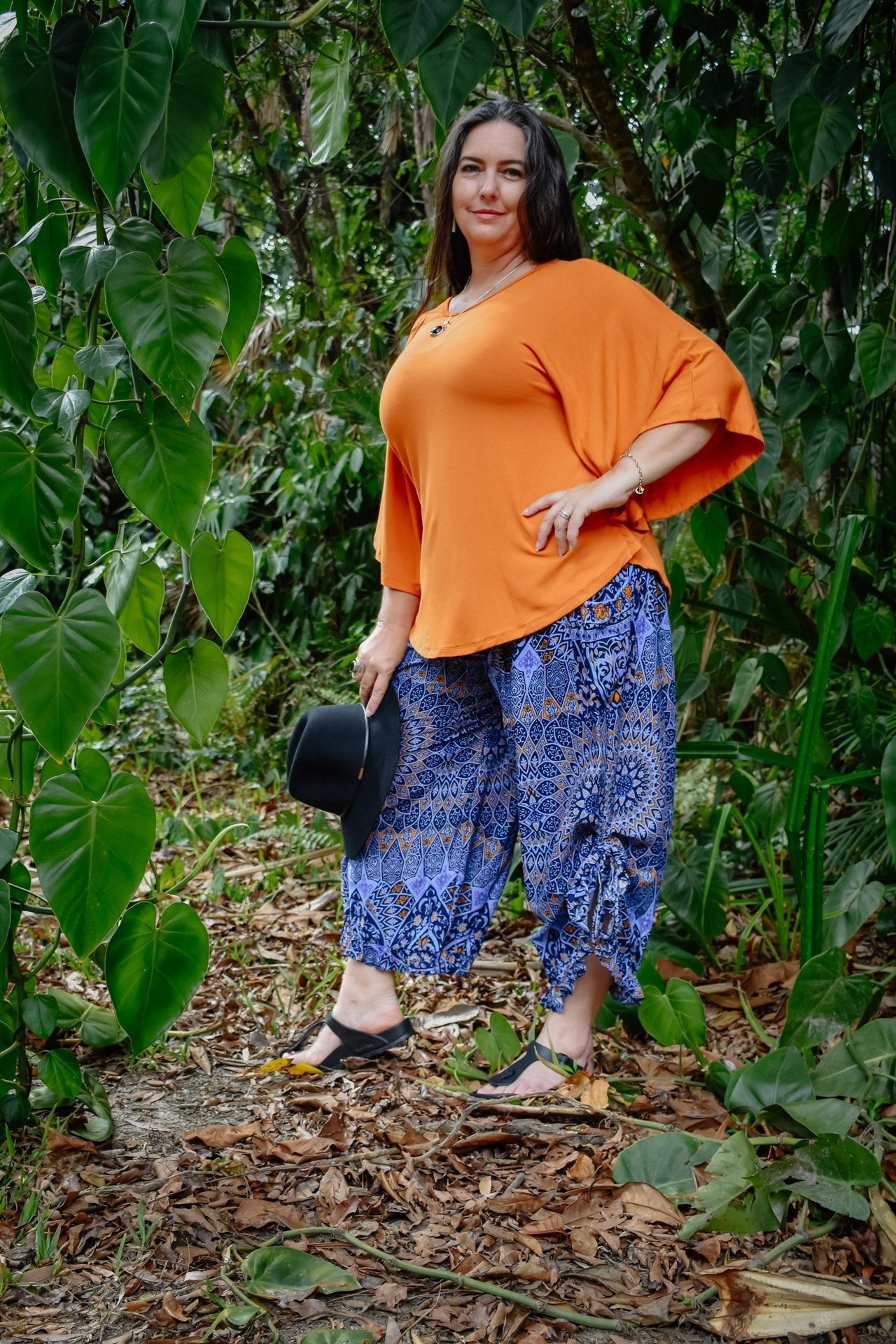 Our newly arrived "Passport Pants" in the gorgeous Mystic Blue print offer a cool, calming vibe with the serene shades of Blue and contrasts of luxurious Gold. The unique print elevates these casual pants to another level of casual Diva. Whether you're backpacking through Asia or just driving to another town, our Rayon pants will keep you comfortable throughout. Made using a generous amount of fabric and flexible finishes, these relaxed pants have an effortlessly eclectic and elegant look.