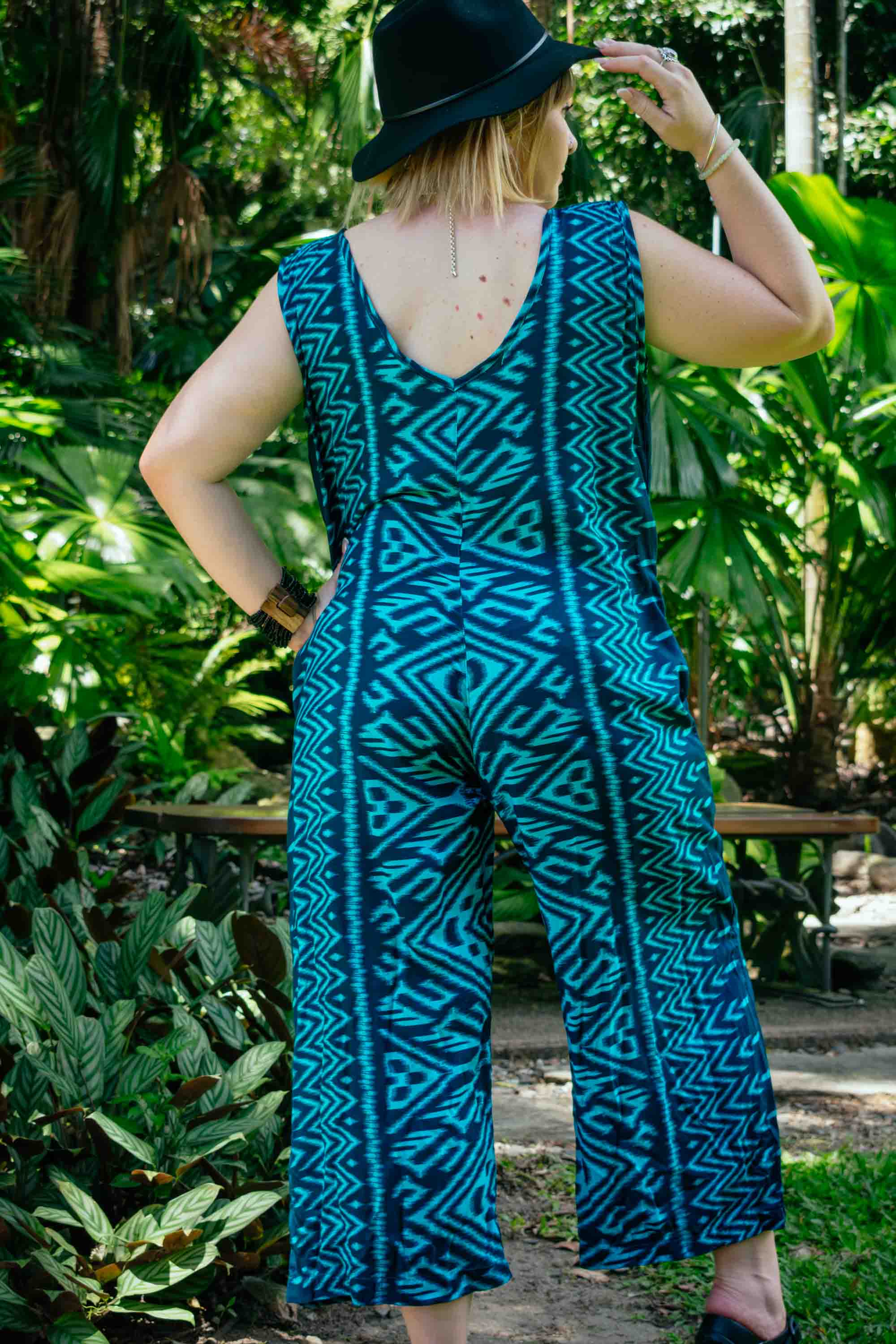 Fresh, striking, and effortlessly flattering, our Tamarind Jumpsuit – Aztec Teal combines a sleek silhouette with a bold geometric print in rich Teal tones. The linear design enhances the shape while keeping the fit relaxed and easy to wear. Crafted from cool, lightweight Rayon, this jumpsuit feels breathable and soft against the skin, with practical pockets adding everyday functionality. Style it with wedges, a belt, or statement accessories for festivals, garden parties, or relaxed summer occasions.